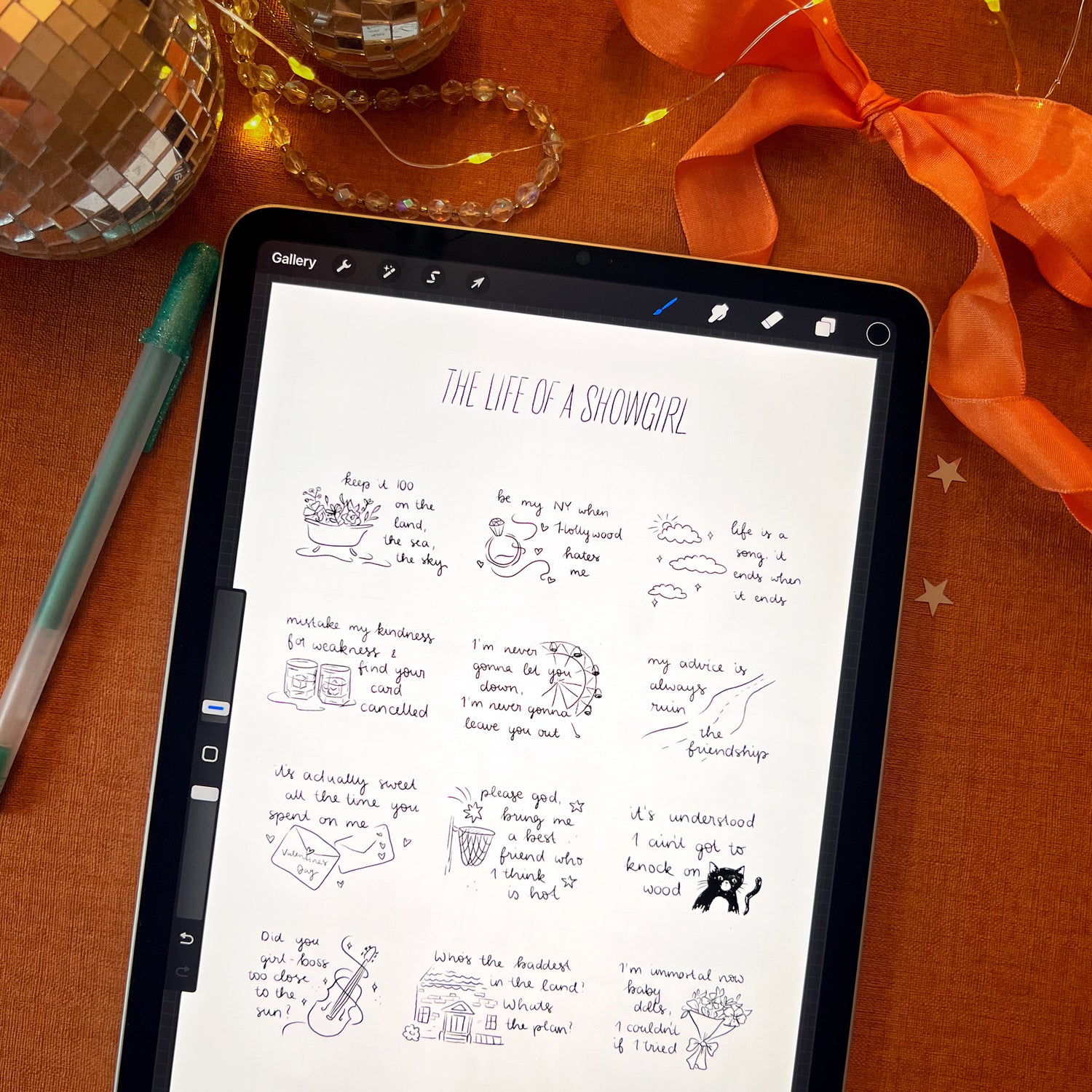 I’m Anna, a fan artist who believes in celebrating the moments that music makes magical. Every piece is hand-drawn, inspired by s lyrics, eras, and lots of stories.