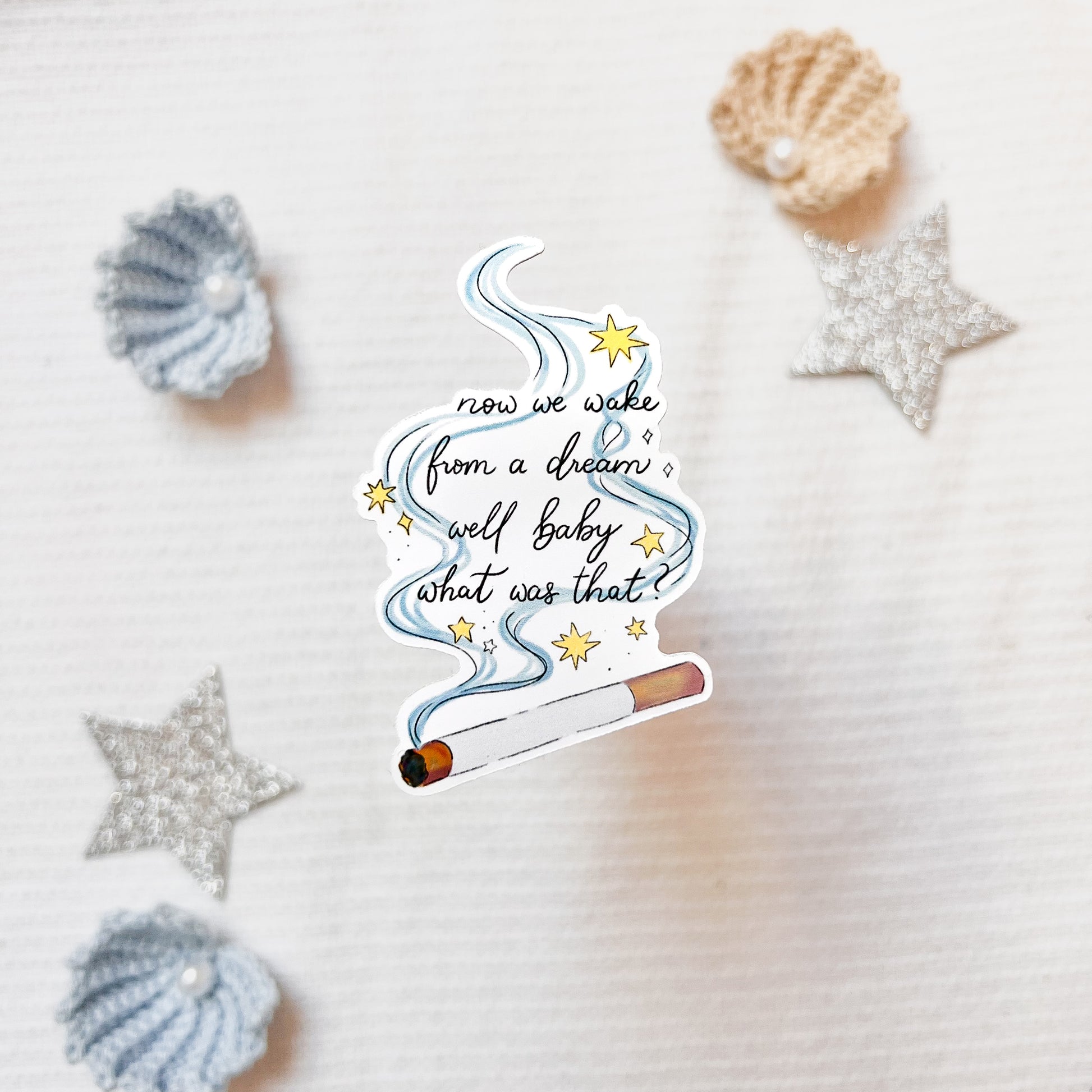 Designed with hand-drawn smoke trails, glowing stars, and delicate lettering, it’s the perfect sticker for Lorde fans, and anyone still lingering in a half-forgotten feeling.